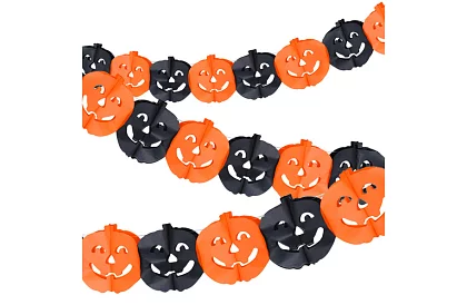 Vytvořte působivou dekoraci s papírovou halloweenskou girlandou plnou velkých dýní. Girlanda je dlouhá 3 metry, každá dýně měří 17,5 × 17,5 cm, což zajišťuje wow efekt na každé párty, ve škole, obchodě nebo doma. Ideální pro Halloween, podzimní večírky nebo k zavěšení do oken, nad stoly či do předsíně – snadné použití přináší maximální vizuální efekt a teplou podzimní atmosféru.