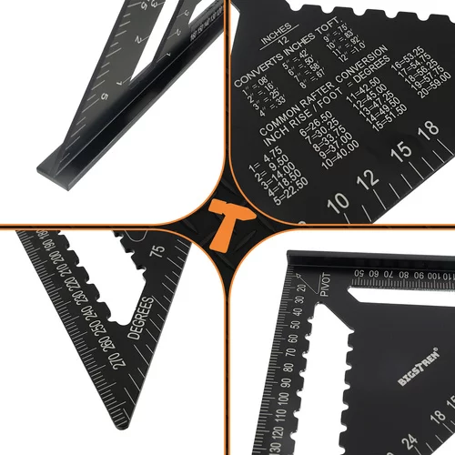 Ideální nástroj pro přesná měření úhlů při tesařských, truhlářských i hobby projektech. Stupnice jsou odolné a čitelné, což zaručuje spolehlivé a přesné výsledky. Pevná hliníková konstrukce zajistí dlouhou životnost a odolnost proti poškození a deformaci.
