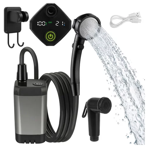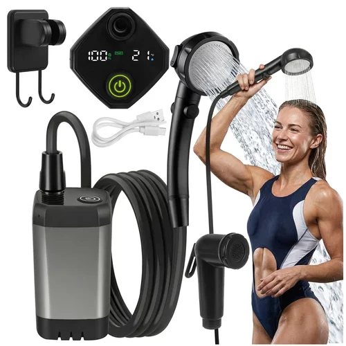 Dopřejte si pohodlnou hygienu kdekoliv – na cestách, v kempu i na zahradě. Díky vestavěné baterii a čerpadlu získáte nezávislý zdroj vody bez elektřiny a vodovodu, takže si užijete sprchu kdykoliv potřebujete. LCD displej, nastavitelný průtok a dlouhá hadice zajišťují maximální komfort při používání. Kompaktní konstrukce a snadné nabíjení přes USB-C dělají z této sprchy ideálního společníka pro každé dobrodružství.