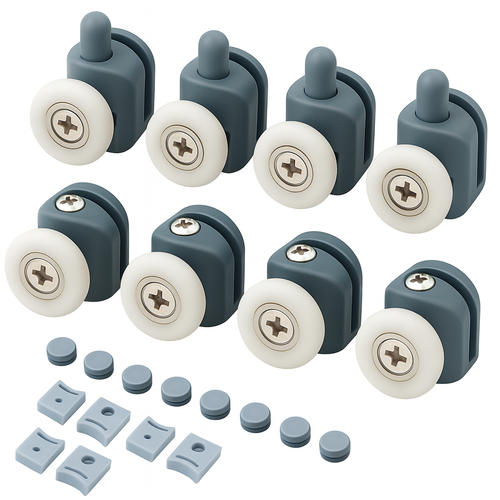 Sada horních a spodních koleček je ideální pro snadné a plynulé otevírání sprchových koutů. Kolečka jsou vyrobena z odolného plastu a kovu, odolného proti korozi, a pasují do většiny sprchových kabin. Systém umožňuje rychlou výměnu, snadnou montáž i vyjmutí skla pro čištění bez demontáže válečků.