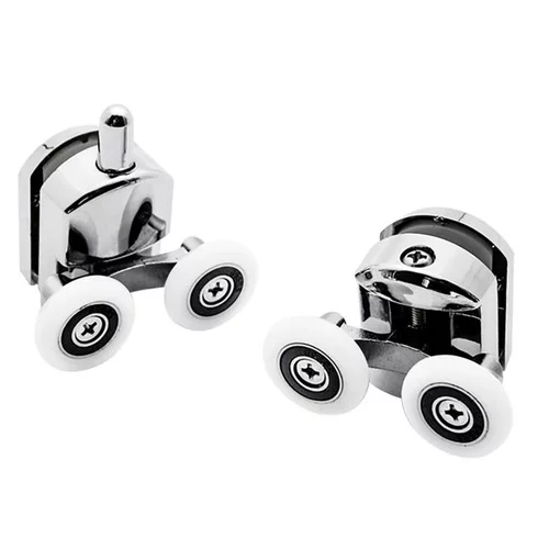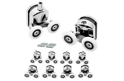 Kolečka pro sprchovou kabinu zajistí hladké otevírání a zavírání dveří a chrání je proti vypadnutí z vedení. Pochromované válečky vypadají esteticky a jejich dvojitá konstrukce zajišťuje pevné držení skla. Sada obsahuje také nárazníky pro ochranu pojezdových systémů, které se montují do horního i spodního profilu kabiny. Ideální pro výměnu opotřebovaných nebo poškozených koleček.