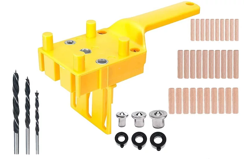 Příruční kolíkovací vychytávka. S tímto kolíkovačem bude mít každý kutil mnohem méně práce. Používá se především pro snadnou výrobu kolíkového spoje. Jednoduché a rychlé použití. Využijete především pro vrtání otvorů pro kolíky na spojování dvou desek. Další využití najde tato kolíkovačka, pokud budete chtít udělat více otvorů v jedné vzdálenosti od hrany materiálu. Použitím prostředního otvoru je možné pomocí vystupujících kolíků na kolíkovačce udělat rychle otvor ve středu hrany desky. Na kolíkovači je madlo pro lepší manipulaci.