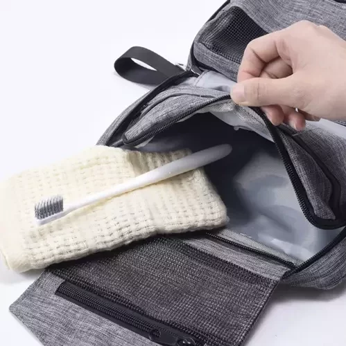 Cestovní taška poskytuje praktické a uspořádané uložení kosmetiky a doplňků při cestách, služebních cestách nebo kempování. Díky háčku lze tašku zavěsit a mít všechny věci ihned po ruce, voděodolný materiál chrání obsah při sprchování a vlhkosti. Zip a držadlo umožňují pohodlné otevírání, zavírání a přenášení.