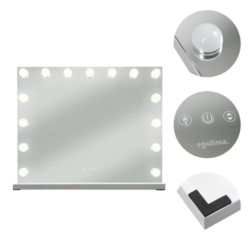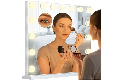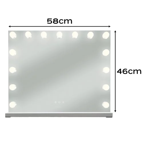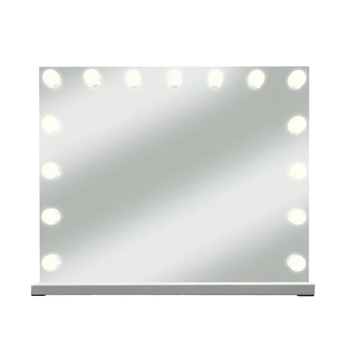 Elegantní kosmetické zrcadlo v hollywoodském stylu poskytuje profesionální osvětlení pro dokonalé líčení, péči o pleť i úpravu vlasů. Díky 15 LED žárovkám a možnosti volby tří barev světla nabízí ideální podmínky pro každodenní styling. Dotykové ovládání, plynulé nastavení jasu a velká zrcadlová plocha zajišťují komfort při používání doma i v kosmetickém salonu.