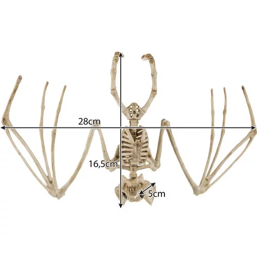 Výrazná a originální dekorace, která okamžitě navodí temnou halloweenskou atmosféru. Kostra netopýra visící hlavou dolů působí realisticky a děsivě, takže skvěle doplní výzdobu interiéru i tematických akcí.