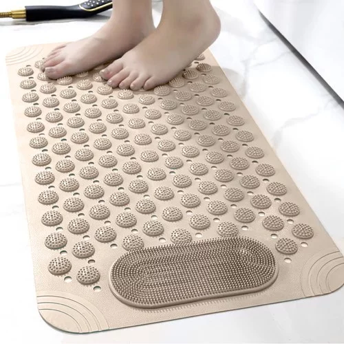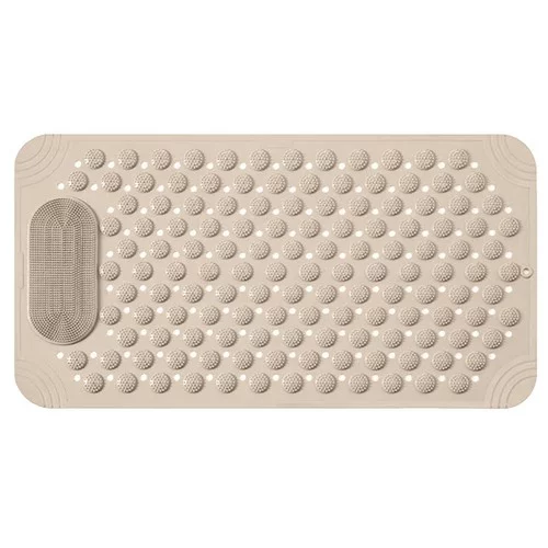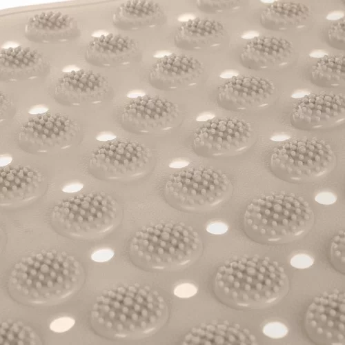 Bezpečnost a relaxace v jednom. Podložka je ideální před i do vany nebo sprchy a nabízí masážní efekt pro chodidla i tělo. Protiskluzové přísavky zajišťují stabilitu a bezpečné používání i ve vlhkém prostředí. Otvory pro odtok vody podporují rychlé schnutí a snadnou údržbu, zatímco masážní hroty zlepšují prokrvení a přinášejí pohodlí při každodenní péči o nohy.