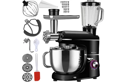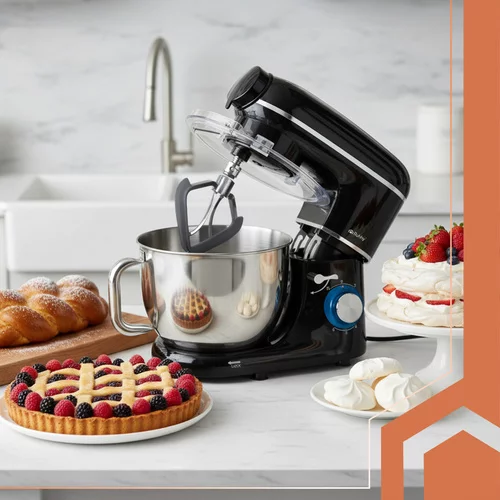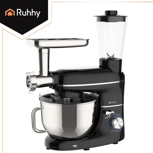 Robot RUHHY je kompletní multifunkční kuchyňský spotřebič, který nahradí několik přístrojů najednou. Umožňuje šlehání, hnětení, míchání, mixování, mletí, zdobení i sekání, takže snadno připravíte lehké krémy i husté směsi. Díky výkonu 1500 W, prostorné nerezové míse o objemu 6,2 l a skleněnému mixéru o objemu 1,5 l se stane nepostradatelným pomocníkem v moderní kuchyni.