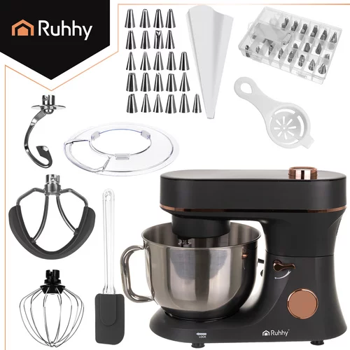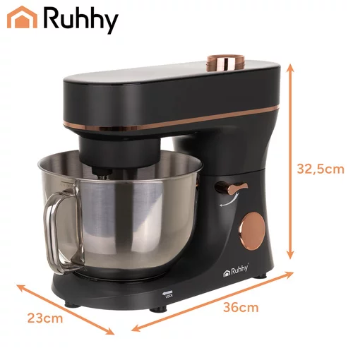 Ruční hnětení těsta je minulostí – robot Gold RUHHY zvládne vše za vás. Vyhřívaná mísa zajišťuje ideální podmínky pro kynutí těsta a sada nástavců (hák, metla, šlehač) umožňuje připravit lehké krémy, hustá těsta na pizzu nebo chléb. Dotykový displej, ovládací knoflík, mísa s rukojetí a ochranný kryt udržují kuchyň v pořádku. Stylový a funkční design dělá robot spolehlivým partnerem každodenního vaření.