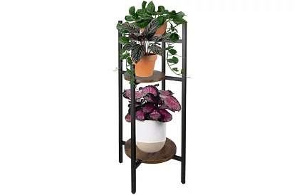 Kovový loftový stojan na květiny nabízí moderní řešení pro rostliny a květináče v obývacím pokoji, kanceláři, zahradě, na balkonu nebo v hale. Pevná konstrukce z kovu a MDF zajišťuje stabilitu i při plném zatížení a vyrovnávací nožky chrání podlahu před poškrábáním. Geometrický loftový design zapadne do různých interiérů a tři úrovně umožňují efektivní vystavení rostlin, vytvářející atraktivní prostorovou kaskádu. Montáž je jednoduchá díky kompletní sadě příslušenství a obrázkovému návodu.