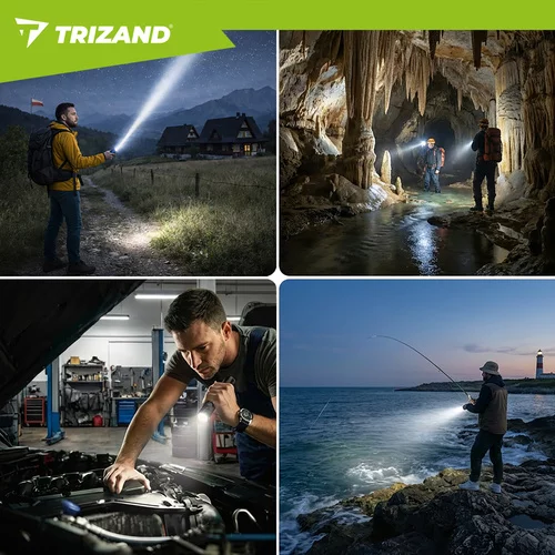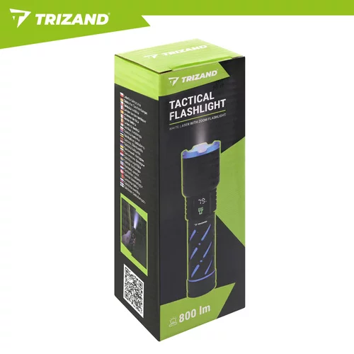 Výkonná taktická svítilna poskytuje spolehlivé osvětlení doma, v autě i v terénu. Díky výkonu 800 lumenů, dosahu až 200 m a třem režimům svícení (silný, střední, stroboskopický) je možné přizpůsobit světlo situaci. Baterie 5000 mAh zajišťuje dlouhou výdrž až 12 hodin a možnost dobíjení přes USB-C umožňuje pohodlné použití i v terénu. Pevná hliníková konstrukce, digitální displej, možnost powerbanky a ergonomický design s úchyty pro ruku nebo batoh zajišťují bezpečné a komfortní ovládání.
