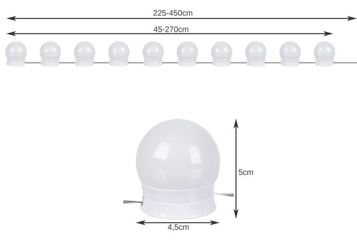 Praktická sada USB LED lamp nabízí dokonalé osvětlení pro váš toaletní stolek nebo zrcadlo. Díky třem odstínům světla – studená bílá, denní světlo a teplá bílá – a 10 úrovním intenzity si snadno nastavíte ideální světlo pro líčení, úpravu účesu nebo dekoraci. Energeticky úsporné LED lampy jsou odolné, nerozbitné a flexibilní – délku kabelu lze nastavit až na 25 cm mezi jednotlivými lampami, což umožňuje vytvářet působivé kompozice a aranžmá.
