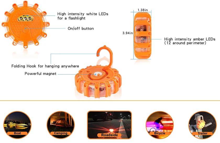 Tento výrobek by neměl chybět v žádném automobilu a motocyklu. Z bezpečnostních důvodů při poruše večer nebo v noci je výstražné světlo vidět už z velké dálky. |