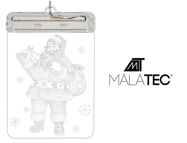 Přináší sváteční atmosféru do každého domova díky oboustrannému designu, který vypadá nádherně zvenku i zevnitř. Vitrážová deska je vyrobena z odolného plastu s precizním laserovým gravírováním, které zvýrazňuje detailní motiv Santy. Bateriový provoz umožňuje umístit dekoraci prakticky kamkoli bez omezení kabely nebo zdrojem elektrické energie. Vitráž je univerzální, poslouží nejen jako vánoční dekorace, ale i jako noční lampička vytvářející příjemnou atmosféru, například v dětském pokoji. Díky praktické přísavce je montáž jednoduchá a diskrétní, dekorace neruší celkový vzhled okna.