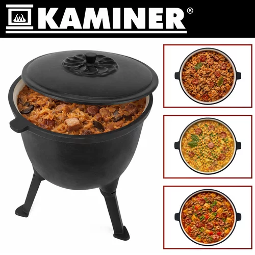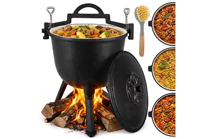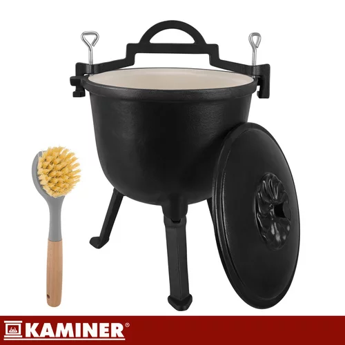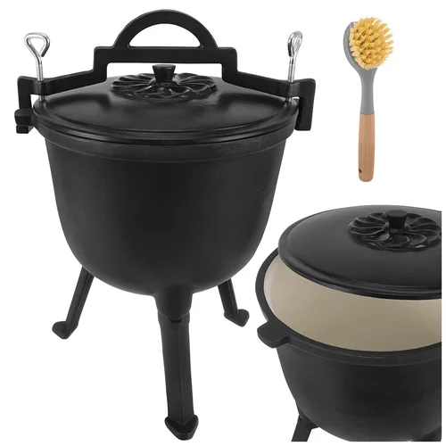 Vaření na ohni je nyní snadné a bezpečné s litinovým kotlíkem o objemu 8 litrů, který nabízí rovnoměrné rozložení tepla a vysokou odolnost vůči vysokým teplotám. Smaltovaný vnitřek usnadňuje čištění a eliminuje nutnost impregnace po každém použití. Ideální pro přípravu vydatných pokrmů na táboře, v krbu nebo na zahradě, kotlík umožňuje pohodlnou manipulaci díky odnímatelným nohám a praktickému držáku.