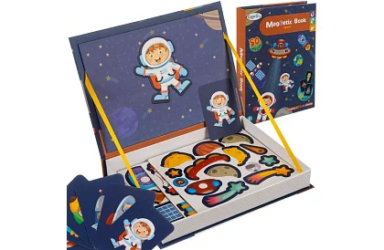 Magnetická puzzle knižka rozvíjí kreativitu, představivost a jemnou motoriku. Děti mohou vytvářet vlastní vesmírné scény pomocí barevných magnetů a inspirovat se oboustrannými kartami se vzory. Kompaktní provedení ve formě knihy umožňuje pohodlné přenášení a zajišťuje, že všechny prvky zůstanou během hry na svém místě. Hra podporuje koordinaci oko–ruka, prostorové vnímání a logické myšlení.