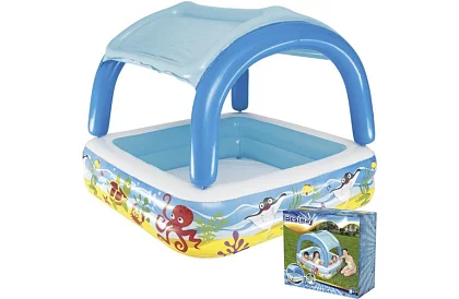 Dopřejte dětem osvěžení a bezpečnou letní zábavu s nafukovacím bazénem se stříškou. Praktická nafukovací stříška pomáhá chránit před přímým sluncem, zatímco prostorné provedení nabízí dostatek místa pro hraní a cákání. Odolný vinylový materiál a dvoukomorová konstrukce zajišťují stabilitu, pohodlí a dlouhou životnost při používání na zahradě i terase.