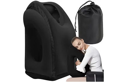 Velký a pohodlný cestovní polštář zajišťuje komfortní odpočinek při dlouhých cestách letadlem, vlakem, autem či autobusem. Ergonomický úhel sklonu 45° spolu s opěrkou ramen a hlavy podporuje přirozenou polohu těla a snižuje napětí krku a šíje. Obličejový výřez a otvory na ruce umožňují pohodlné držení hlavy a volné používání telefonu, čímž kombinují pohodlí a funkčnost. Univerzální materiál PVC a možnost nastavení tvrdosti přizpůsobí polštář každé siluetě, a systém regulace vzduchu umožňuje individuální úpravu pohodlí.
