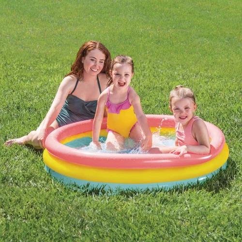 Bezpečný dětský bazének s měkkým nafukovacím dnem poskytuje pohodlí a ochranu pro malé děti při hře ve vodě na zahradě, terase nebo balkonu. Snadné sestavení a skladování zajišťuje rychlou přípravu k použití a klid rodičům, zatímco měkké stěny a pumpované dno chrání nožičky dítěte a zvyšují komfort. Duhové barvy lákají děti k delší a zábavné hře.