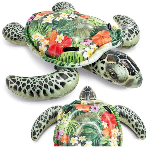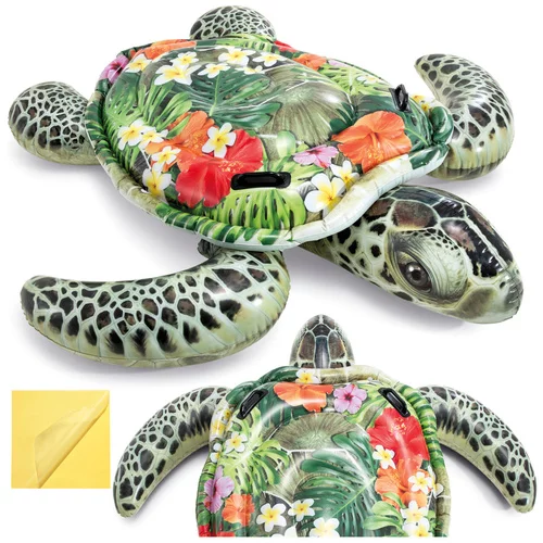 Zábavné nafukovací lehátko ve tvaru želvy je ideální pro děti, které si chtějí užít vodní radovánky bezpečně a pohodlně. Stabilní konstrukce a praktická madla pomáhají udržet rovnováhu na vodě, takže je hra v bazénu nebo u jezera klidnější a jistější.