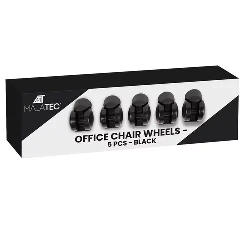 Univerzální použití – sada 5 koleček pasuje na většinu kancelářských, herních, otočných a psacích židlí s 11 mm vřetenem. Instalace je snadná a rychlá – "cvaknutím".