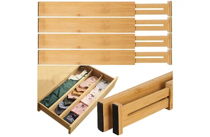 Udržujte zásuvky přehledné, praktické a stylové. Nastavitelné organizéry umožňují, aby každá věc měla své místo a hledání drobností už nebylo ztrátou času. Elegantní bambusový design se hodí do kuchyně, kanceláře, ložnice i dětského pokoje.