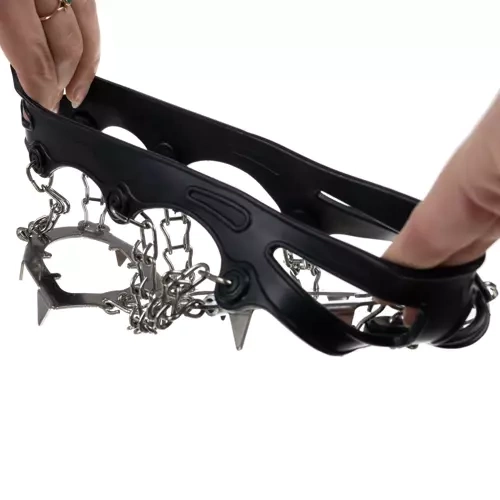 Pružné návleky na boty s 12 ocelovými hroty poskytují pevný a bezpečný krok v náročných podmínkách, jako je sníh, led nebo bláto. Flexibilní TPE materiál umožňuje snadné nasazení a přizpůsobení většině typů obuvi, přičemž zesílená patní opěra a pevné řetízky z nerezové oceli zajišťují stabilitu a ochranu bot. Praktické pouzdro na zip umožňuje jednoduché skladování a přenášení, gripy budete mít vždy po ruce.