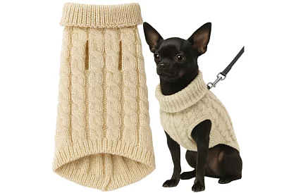 • Obleček teplý svetr pro psa, kočku – velikost S – béžový