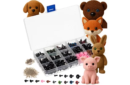 Sada umožňuje bezpečné a pevné uchycení očí a nosů na plyšáky, panenky nebo ručně vyrobené projekty díky závitové západce s podložkou. Obsahuje 560 prvků v různých velikostech, tvarech a barvách, takže je možné je snadno sladit s různými hračkami. Montáž je jednoduchá a intuitivní, bez lepidla či nářadí – stačí stisknout západku. Součástí je praktický organizér s přihrádkami, který udržuje pořádek a pohodlí při práci.