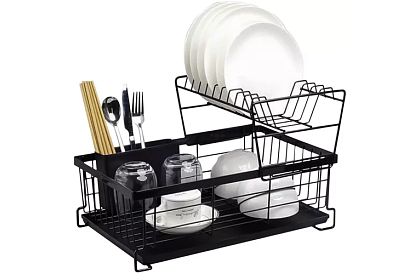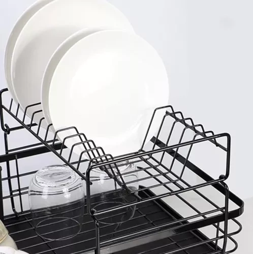 Dvouúrovňová sušička nabízí praktické a elegantní řešení pro uspořádání nádobí v kuchyni. Díky kvalitnímu pochromovanému kovu je odolná proti vlhkosti a poškození, zatímco loftový design dodává moderní vzhled, který ladí s různými typy interiérů. Odnímatelný odkapávač na příbory a praktická zásobník na vodu zajišťují komfortní používání a udržování pořádku.