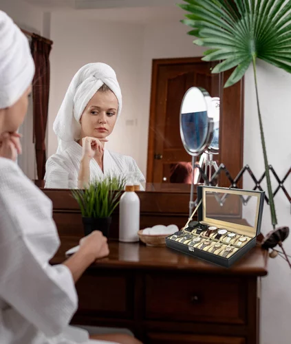 Praktické a elegantní řešení pro přehledné uložení, bezpečnou ochranu a stylovou prezentaci hodinek i šperků. Kombinace kvalitního zpracování, měkkého polstrování a promyšleného vnitřního uspořádání chrání doplňky před poškozením a zároveň umožňuje jejich elegantní vystavení. Díky univerzálnímu vzhledu se hodí do každého interiéru a funguje jako vkusný dárek pro ženy i muže.