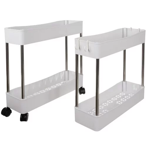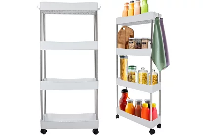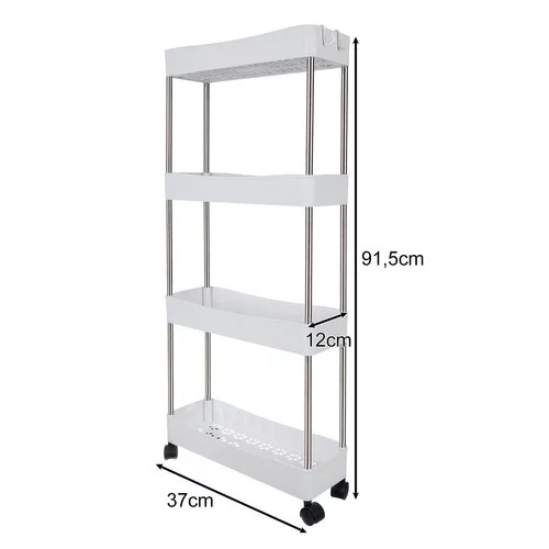 Praktický organizér na kolečkách přináší přehled, mobilitu a úsporu místa do koupelny, kuchyně i dalších prostor. Lehká, ale pevná konstrukce umožňuje snadné přesouvání, zatímco modulární řešení nabízí přizpůsobení výšky podle aktuálních potřeb. Elegantní vzhled doplňuje dekorativní dno polic, které zároveň podporuje lepší cirkulaci vzduchu a hygienu uložených věcí.