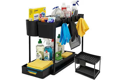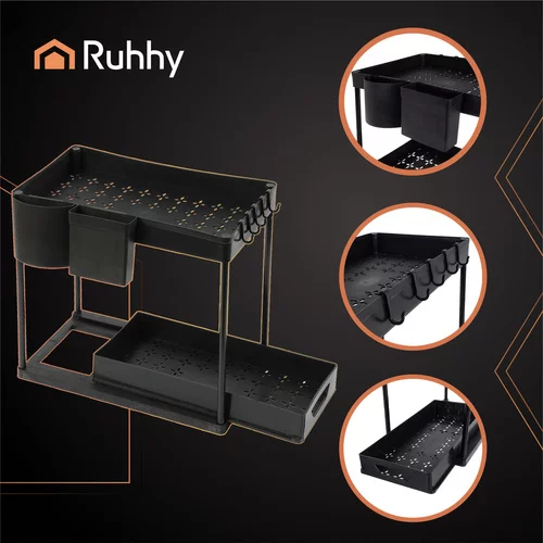 Zajišťuje maximální využití prostoru a přináší pořádek a komfort do každé kuchyně, koupelny či spíže. Dvoupatrová výsuvná police umožňuje snadný přístup ke všem předmětům, aniž by bylo nutné je přeskupovat. Elegantní černý design ladí s každým interiérem a díky odolnému materiálu vydrží každodenní používání. Kompaktní rozměry a rychlá montáž bez nářadí zajišťují univerzální použití i v menších prostorech.
