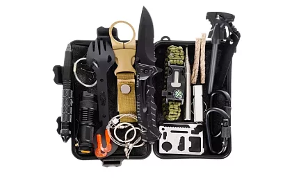 Praktická sada přežití nabízí kompletní vybavení pro náročné situace i outdoorové dobrodružství. Díky pevnému vodotěsnému pouzdru máte vše důležité na jednom místě a připravené k použití. Obsahuje nástroje pro rozdělání ohně, orientaci, světlo, teplo, opravy i základní táboření. Je ideální pro turistiku, survival, kempování i jako originální dárek pro každého, kdo má rád expedice a pobyt v přírodě. Tato rozsáhlá sada vám pomůže zajistit podmínky nezbytné pro přežití – teplo, světlo, možnost přípravy jídla i základní ochranu.