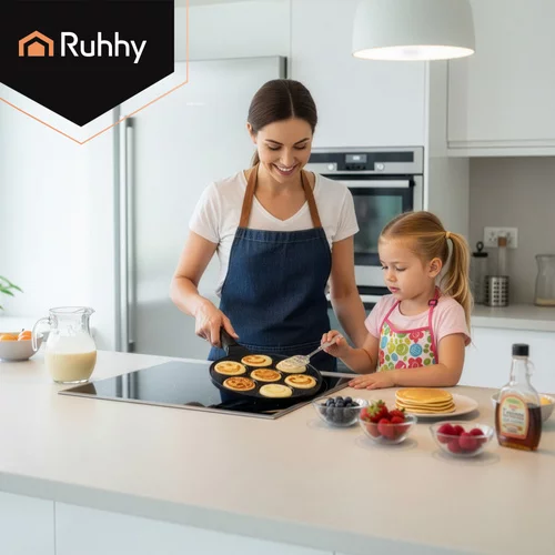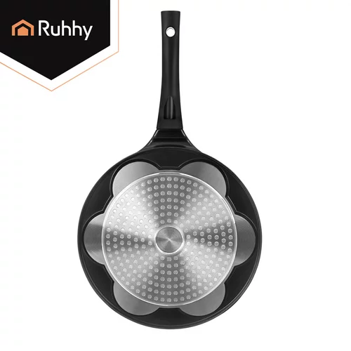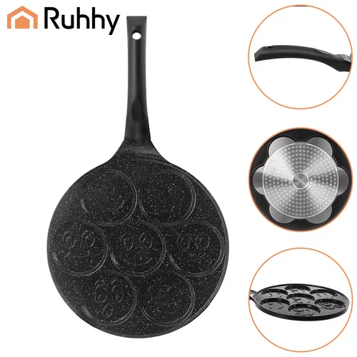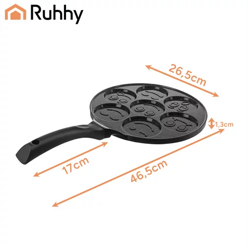 Nepřilnavá pánev na lívance RUHHY zpříjemní každé vaření a promění snídaně v zábavu pro děti i dospělé. Umožňuje připravit až 7 lívanců nebo vajíček najednou, čímž šetří čas a usnadňuje přípravu jídla pro celou rodinu. Keramický nepřilnavý povrch zajišťuje snadné smažení bez připalování a s minimem tuku. Univerzální dno je vhodné pro všechny typy sporáků včetně indukce a rovnoměrné rozložení tepla garantuje perfektní výsledek při každém použití.