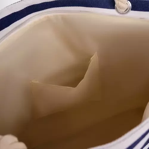 Stylová a praktická taška v námořnickém designu je ideální na pláž, piknik nebo do města. Díky kvalitnímu, odolnému a snadno čistitelnému materiálu ochrání vaše věci před vlhkostí a poškozením. S prostorným vnitřkem a přídavnou kapsou na cennosti máte všechny potřebné věci pohodlně po ruce.