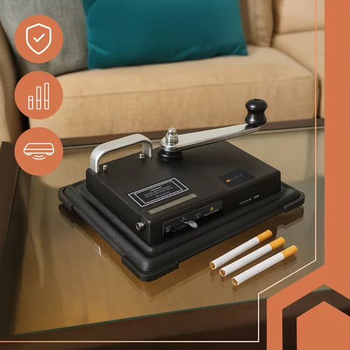 Chcete si balit vlastní cigarety rychle, přesně a bez zbytečného plýtvání? Tento pístový strojek vám umožní rovnoměrné plnění dutinek během pár vteřin, a to s minimální námahou. Díky pevné konstrukci a stabilní základně získáte spolehlivý výkon při každém použití – ideální pro domácí použití i pravidelné balení.