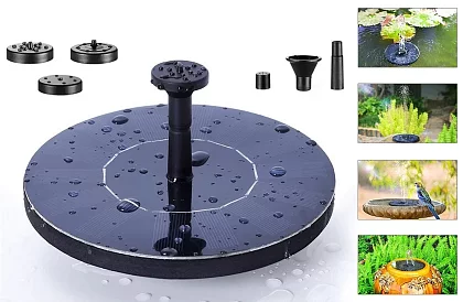 Tato solární fontána se stane originální ozdobou vaší zahrady nebo terasy. Solární fontánu lze umístit do jezírka, bazénu nebo jakékoli nádoby s vodou. Napájení zajišťuje solární panel, takže není nutný jakýkoli jiný zdroj energie např. baterie či elektřina a její umístění je tedy jen na vás. Díky sadě 4 trysek dokáže vytvářet různé vodní efekty a jejich výměna je opravdu snadná.