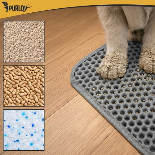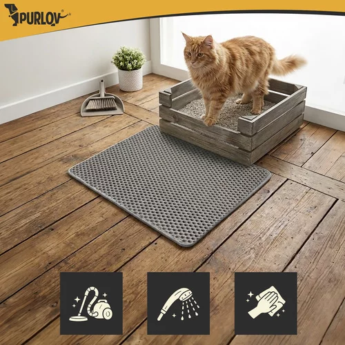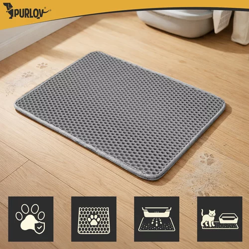 Už vás nebaví stelivo roznášené po bytě po každé návštěvě kočičí toalety? Tato podložka Purlov o rozměrech 60 × 45 cm zachytává granule z tlapek a pomáhá udržet okolí toalety čisté – bez nutnosti neustálého zametání.