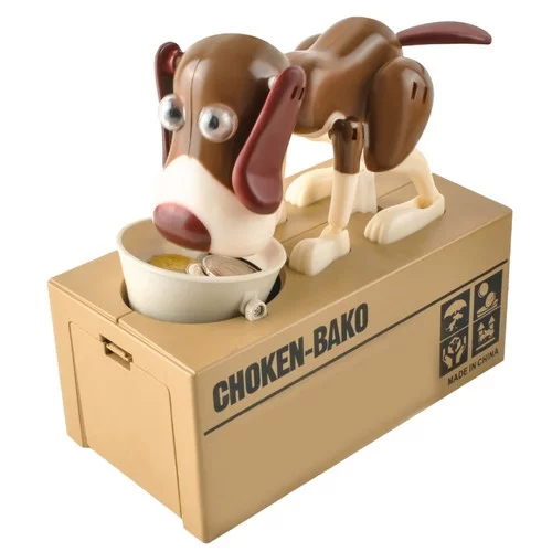 Díky uzavíratelné krabičce lze mince jednoduše vybrat a splnit tak sen malých spořivců. Stačí vložit minci do misky a stisknout ji – pejsek začne „hltat“ a mince sklouzne dovnitř.