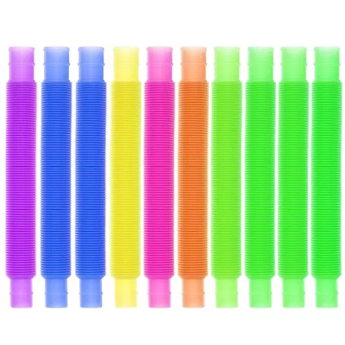 Barevné a zábavné trubičky, které kombinují smyslovou stimulaci s rozvojem motoriky a kreativity. Díky různým délkám a barvám mohou děti i dospělí vytvářet vlastní tvary, učit se barvy a zároveň si užít relaxaci a uvolnění stresu. Trubičky poskytují praskavý zvuk při natažení, což zvyšuje interaktivní zábavu a podporuje fyzikální myšlení.