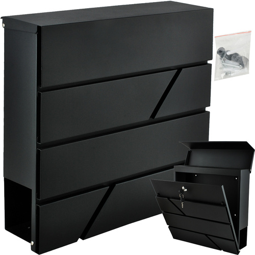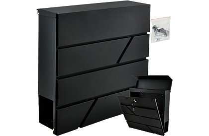 Poštovní schránka v elegantní antracitové barvě kombinuje odolnost a praktičnost. Díky pozinkovanému železu je odolná proti korozi a vydrží mnoho sezón. Krytý vhoz umožňuje bezpečné uložení dopisů formátu A4, zatímco spodní tuba pojme srolované noviny a letáky. Součástí balení jsou klíče i montážní příslušenství, takže instalace je rychlá a jednoduchá.