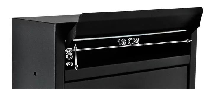 Robustní poštovní schránka vyrobená z pozinkované oceli, která je odolná proti rezavění a vydrží mnoho sezón. Má zakrytý otvor pro dopisy, který chrání obsah před deštěm a vlhkostí, a adresní okno s možností vložení štítku pro číslo domu, bytu nebo jméno. Na přední straně je také kukátko, umožňující rychlou kontrolu obsahu. Součástí balení jsou 2 klíče, montážní kolíky a pryžové podložky pro snadnou instalaci.