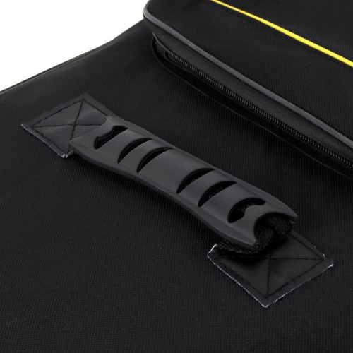 Pouzdro na kytaru je praktickým a odolným doplňkem pro studenty hudebních škol i profesionální hudebníky. Díky nastavitelným popruhům je možné přizpůsobit výšku pro děti i dospělé, což zajišťuje pohodlné nošení i na delší vzdálenosti. Pouzdro je vyrobeno odolně proti poškození a chrání kytaru při každodenním cestování. Má dvě kapsy – horní pro menší příslušenství, jako je kapodastr nebo trsátka, a spodní kapsu vhodnou pro formát A4, kam snadno uložíte notový zápis a drobnosti. Pouzdro je vhodné pro kytary do velikosti 41 palců a spodní část je vyztužená pro bezpečné nošení vybavení.