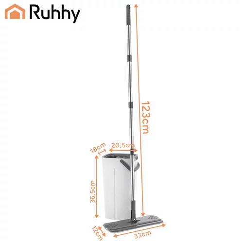 Umožňuje rychlý a hygienický úklid bez zbytečné námahy. Dvoukomorový kbelík odděluje čistou a špinavou vodu, čímž zabraňuje šíření nečistot a šmouh. Mop s otočnou hlavou 360° se snadno dostane do rohů, pod nábytek i k těžko přístupným místům. Systém ždímání bez použití rukou chrání ruce a podlahu, zatímco opakovaně použitelné potahy umožňují každodenní čištění s minimem údržby. Stabilní konstrukce z nerezové oceli a odolných plastů zajišťuje dlouhou životnost produktu a komfortní používání.