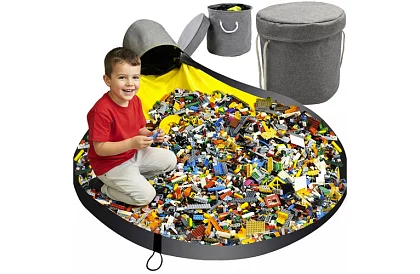 Chytré řešení pro rychlý úklid hraček a jasně vymezený dětský herní prostor. Kombinace úložného koše a hrací podložky usnadňuje organizaci, šetří čas rodičům a podporuje děti v samostatném uklízení. Rozprostřená podložka slouží jako herní zóna a po skončení hry se během chvilky promění v praktický koš na všechny hračky.