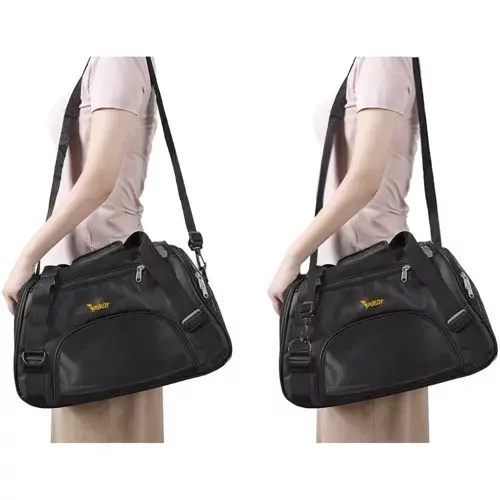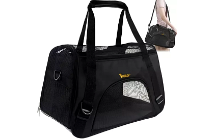 Přepravní taška je bezpečná a pohodlná volba pro přepravu psů, koček nebo malých savců. Vyrobená z odolného materiálu s pevnými boky a vyztuženým dnem zajistí komfort a stabilitu během cesty. Velké větrání umožňuje zvířeti volně dýchat a speciální madlo spolu s možností připevnění ramenního popruhu usnadňuje přenášení.