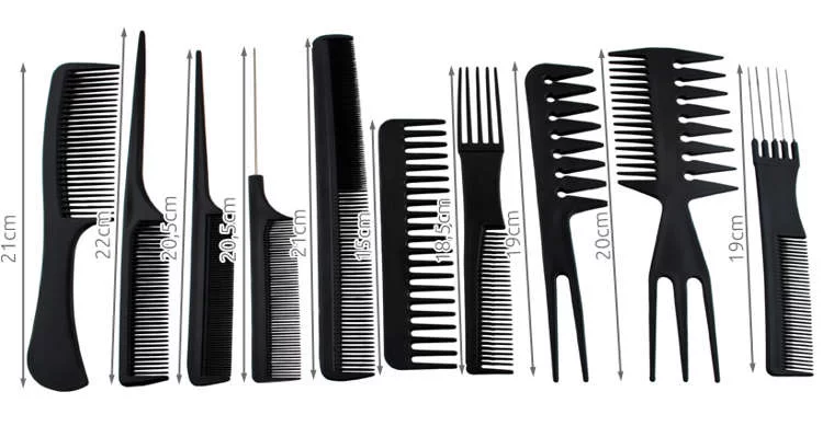 Praktická sada profesionálních kadeřnických hřebenů je ideální jak pro použití v kadeřnickém salonu, tak i pro domácí styling. Různé typy a velikosti hřebenů umožňují snadno přizpůsobit nástroj konkrétnímu účesu. Hřebeny jsou šetrné k vlasům, tepelně odolné a usnadňují každodenní česání i náročnější úpravu vlasů.
