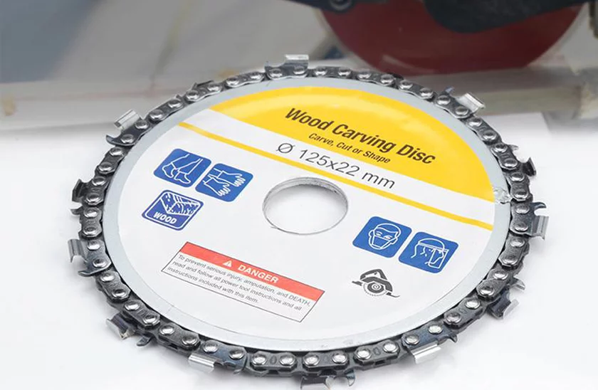 Řetězový řezný kotouč 125 x 22 mm by neměl chybět v žádné dílně. Řetěz se skládá z po sobě jdoucích levých a pravých zubů, které Vám pomůžou odříznout měkké i tvrdé dřevo, plast, led nebo tvrdou gumu. Lze s ním pracovat nejen v přímém směru ale i materiál velice lehce tvarovat. Nosný střed je vyroben z ocelového plechu, jehož obvod je opásán 19ti článkovým řetězem, který používá klasická motorová řetězová pila.