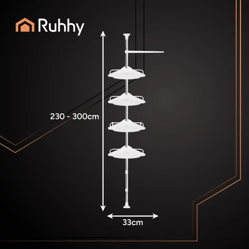 Praktická teleskopická sprchová polička přináší pořádek, pohodlí a moderní styl do každé koupelny. Nastavitelná výška od 240 do 310 cm umožňuje přizpůsobení jakémukoli prostoru bez vrtání. Čtyři funkční police, háčky a ramínko poskytují místo pro kosmetiku, houbičky, ručníky a další koupelnové doplňky. Stylové a funkční řešení, které usnadní každodenní organizaci koupelny.