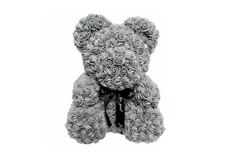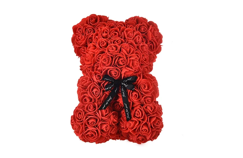 Medvídek je vyráběn ručně z pěnových květů růží, což zaručuje, že jak na dotek, tak na pohled je velmi příjemný, dokonalý a okouzlující.